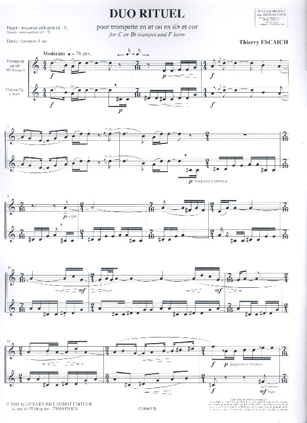 | Untertitel: | pour trompette et cor en fa 2 partitions |