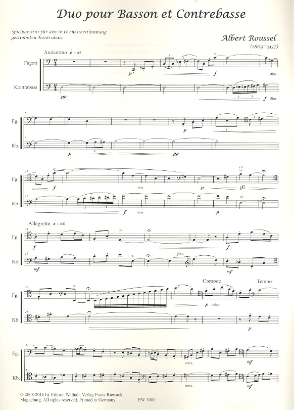 | Untertitel: | für Fagott und Kontrabass Partitur und Stimmen |