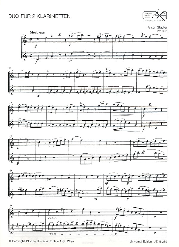 | Untertitel: | für 2 Klarinetten Spielpartitur |