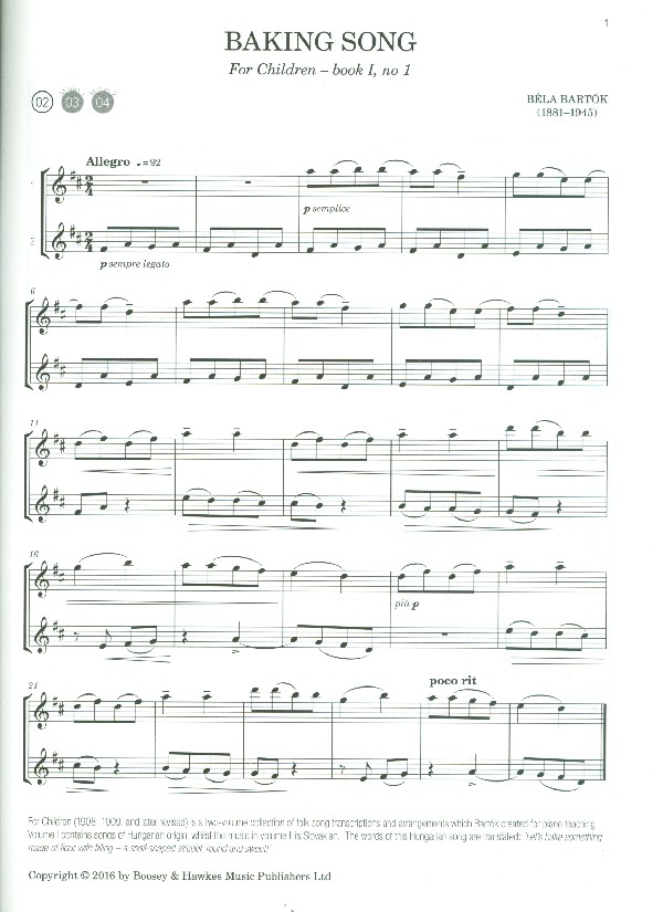 The Boosey & Hawkes Bartók Edition Davies, Hywel, arr. Stylish Arrangements of selected Highlights DUOS: Baking Song County Fair If there were Cherries Wedding Song Blosom In Yugoslav Style in the Water Where are your Geese Melody with Accompaniment Wooden Shoes Duet for Pipes Diminished 5th in Folk Song Style Dialogue no.3 TRIOS: Carol no.7 Come home Lidi County Fair Round Dance Rogue's Song/Sorrow Choral The lost Couple Bulgarian Rhythm Drinking Song