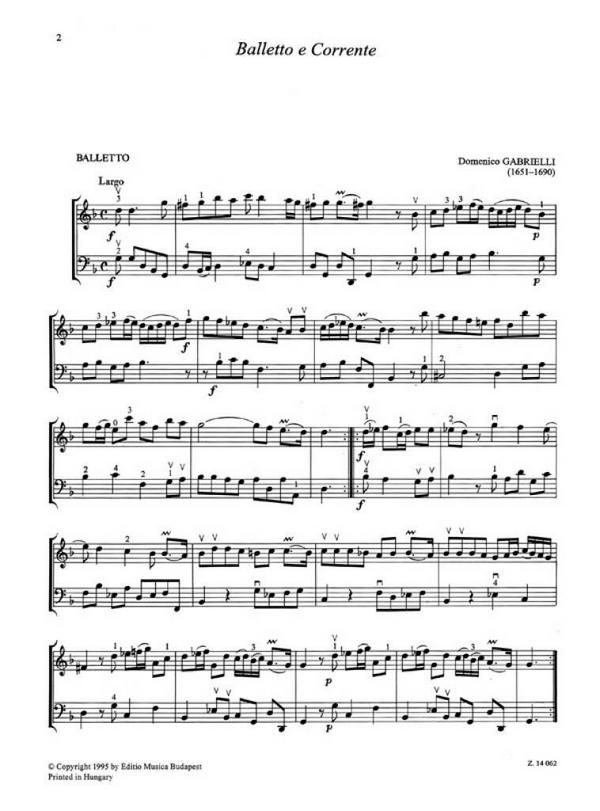 VIGH, LAJOS, ED PEJTSIK, ARPAD, ED Duo in sol maggiore (Albrechtsberger, Johann Georg) Proeambulum e Fuga in mi minore (Bach, Johann Sebastian) Inventio in sol minore (Bach, Johann Sebastian) Inventio in sol maggiore (Bach, Johann Sebastian) Larghetto sostenuto e Rondo (Beethoven, Ludwig van) Sonata in do maggiore (Belisi, F. C.) De Aria (Blainville, Charles Henri) Sonata in re minore (Corelli, Arcangelo) Sonata in sol minore (dall' Abaco, Evaristo Felice) Balletto e Corrente (Gabrielli, D.) Andantino grazioso (Giordani, Tommaso) Duo in re maggiore (Haydn, Joseph) Sonata in sol minore (Iacchini, Giuseppe) Tema con variazioni (Mozart, Wolfgang Amadeus) La Tournée (Passionei, Carlo) Rondo (Stamitz, Carl) Concertino per camera in si minore (Torelli, Giuseppe) Largo (Valentini, Giuseppe) Pastorale (Battista Viotti, Giovanni) Sarabanda Fuga e Giga (Vivaldi, Antonio) Rondo (Zumsteeg, Johann Rudolf)