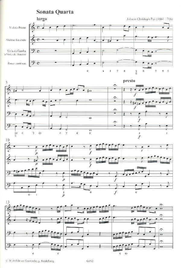 | Untertitel: | für 2 Violinen, Viola da Gamba (Violoncello) und Bc Partitur und Stimmen (Bc nicht ausgesetzt) |