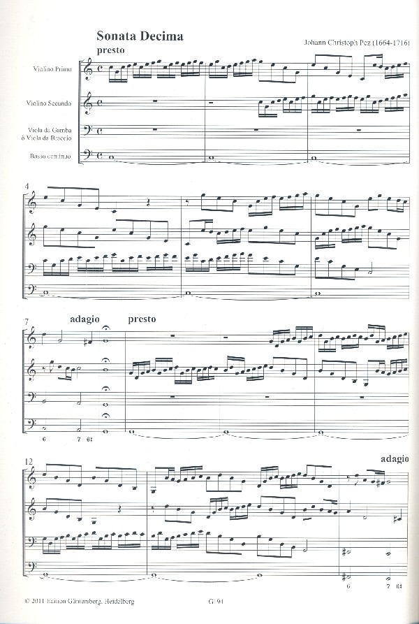 | Untertitel: | für 2 Violinen, Viola da Gamba (Violoncello) und Bc Partitur und Stimmen (Bc nicht ausgesetzt) |