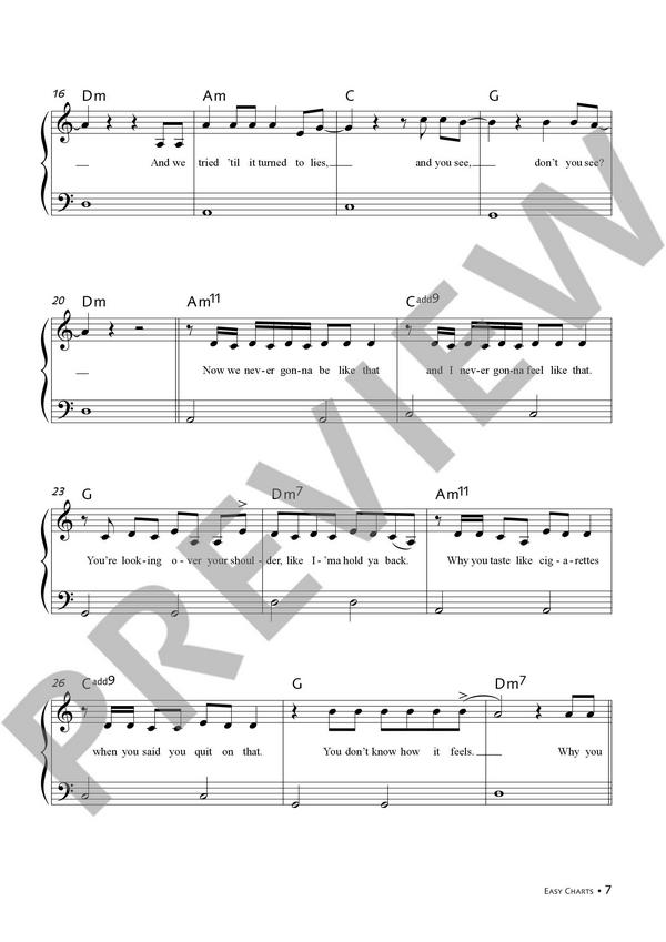 Music Factory Bye, Uwe, arr. Mit Easy Charts 11 erscheint eine Sammlung aktueller Hits, die Anfänger am Klavier schon nach dem ersten Unterrichtsjahr spielen können. Dabei dürfen die großen Hits angesagter Popstars natürlich nicht fehlen: Airplay-Dauerbrenner von The Weekend, Billie Eilish und Dua Lupa und viele mehr warten nur darauf, gekonnt in Szene gesetzt zu werden. So machen das Üben und Spielen zuhause und vor Publikum gleich noch mehr Spaß! Blinding Lights (The Weeknd) Better (Lena & Nico Santos) Bad Guy (Billie Eilish) Hoch (Tim Bendzko) So Am I (Ava Max) Castles (Freya Ridings) Vincent (Sarah Connor) Auf das, was da noch kommt (Lotte & Max Giesinger Sucker (Jonas Brothers) Somone You Loved (Lewis Capaldi) Don't Start Now (Dua Lipa) Señorita (Camila Cabello)