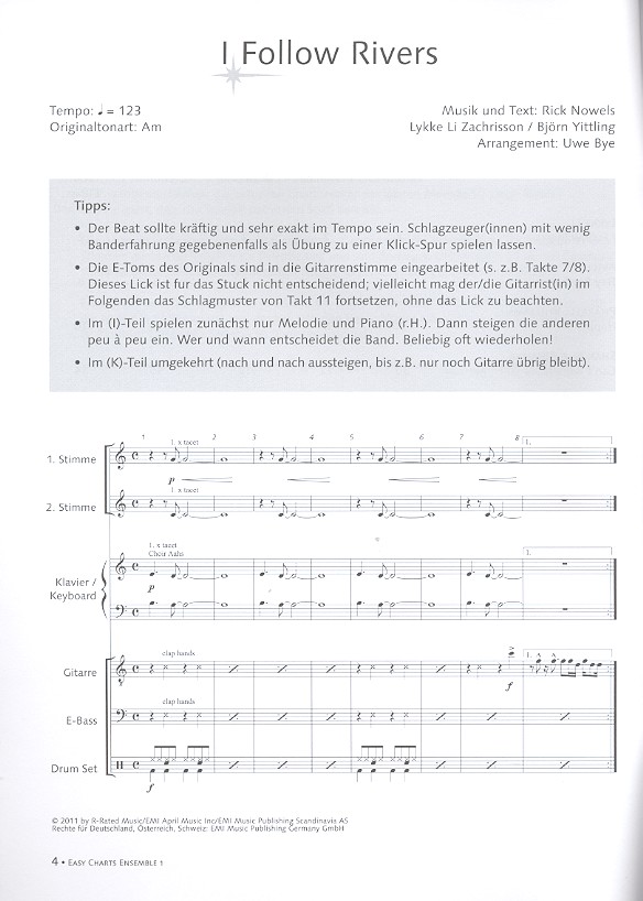 Noten - Texte - Akkorde Die größten Hits für deine Band leicht gesetzt Happy (Pharrell Williams) I follow Rivers (Lykke Li) Hey Brother (Avicci) Can't remember to forget You (Shakira & Rihanna)