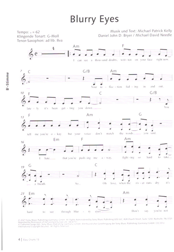 Mit Easy Charts 13 erscheint eine Sammlung aktueller Hits, die Anfänger an verschiedenen Instrumenten wie Flöte, Klarinette, Saxophon oder Trompete schon nach dem ersten Unterrichtsjahr spielen können. Dabei dürfen die großen Hits angesagter Popstars natürlich nicht fehlen: Der Titelsong des neuen Top Gun-Films von Lady Gaga (Hold My Hand), die emotionale Trennungsballade Easy von Adele, der selbstbewußte Chartstürmer Abcdefu von Newcomerin Gayle und viele mehr warten nur darauf, gekonnt in Szene gesetzt zu werden. So machen das Üben und Spielen zuhause und vor Publikum gleich noch mehr Spaß!