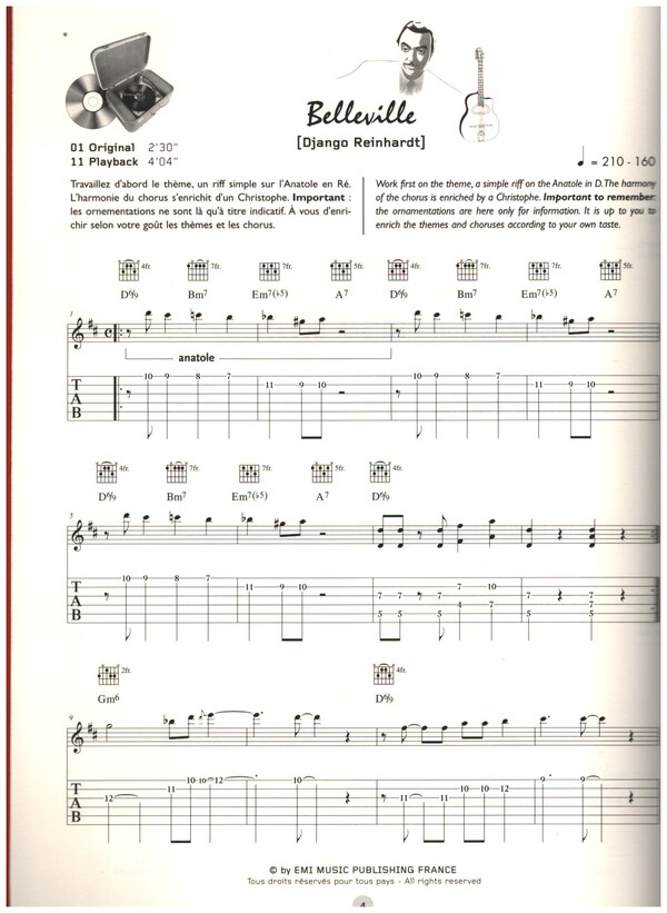 10 Hits de Django easy to play avec les Enregistrements originaux et les Playback Solfège et Tablatures Belleville Blues chair Daphné Douce ambiance Les yeux noir Manoir de mes reves Minor Swing Nuages Swing 42 Troublant Boléro Bookmakers International - Patrick Moulou