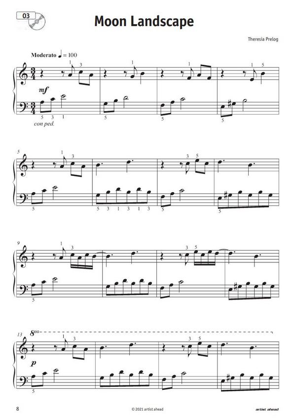 20 sehr leichte bis leichte, gefühlvolle Klavierstücke für Kinder, Jugendliche & Erwachsene Sunbathing Dark Clouds Moon Landscape Fly With Me Flowing Creek Waiting For You Tell It To Me Little Boat Sand Dunes Under The Surface Show Me The Way Why Again A Present For You Different Ways Weightless Time Is Over Melancholy Mood You Will Come Back A Great View Autumn Storm Der Band Easy Romantic Piano Songs enthält 20 sehr leichte bis leichte gefühlvolle Klavierstücke für Spieler jeder Altersstufe ab dem 2. Lernjahr sowie für Wiedereinsteiger in progressiver Reihenfolge angeordnet. Alle Stücke stehen in leicht lesbaren Tonarten und sind auch geeignet für junge Schüler mit kleinen Händen ohne Oktavspannung. Diese romantischen Kompositionen bieten einen optimalen Einstieg in den Gebrauch des Pedals, was für jeden Klavierspieler ein besonderes Klangerlebnis bedeutet. Zudem werden vielfältige technische und musikalische Aspekte weiter entwickelt und verfeinert, wie beispielsweise Terzenspiel, Synkopen, Punktierung, Ablösen und Übergreifen der Hände, erste Verzierungen, dynamische Gestaltung und Geläufigkeit in kurzen, schnellen Spielfiguren. Eine überschaubare Länge und zahlreiche Fingersätze erleichtern das Einüben der Stücke. Die Easy Romantic Piano Songs eignen sich als Ergänzung zu jeder klassischen Klavierschule und sind schön klingende Vortragsstücke für Schülerkonzerte oder im Familien- und Freundeskreis. Download-Material & Audio-CD Unter www.artist-ahead-download.de stehen die enthaltenen Klavierstücke als Audio- und MP3-Dateien zum Download zur Verfügung.
