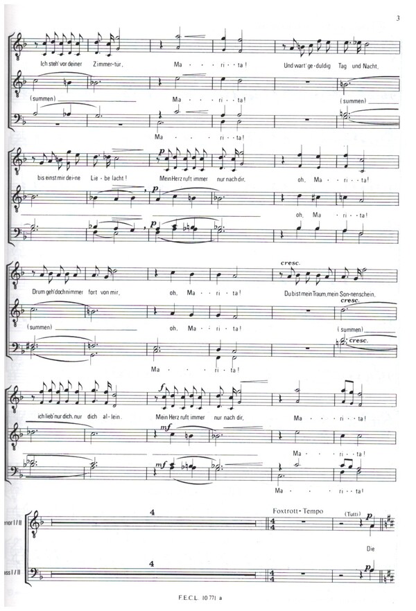 Halletz, Erwin, bearb. Grieshaber, Reinhardt, bearb. Ob blond on braun ich liebe alle Frau'n Mein Herz ruft immer nur nach dir o Marita Die ganze Welt ist himmelblau Vor meinem Vaterhaus steht eine Linde Dann geh ich hinaus in den Wienerwald Wenn die kleinen Veilchen blühen Ich sing mein Lied heut nur für dich Auf der Heide blühn die letzten Rosen Musikant Musikant wo ist deine Heimat Du du du schliess deine Augen zu Mein Liebeslied muss ein Walzer sein