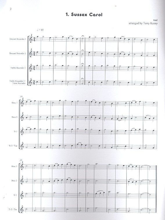Partitur und 3 Sopran 1, 3 Sopran 2, 3 Alt, 3 Tenor (Klavier ad lib.) A Baker's Christmas Dozen Kenny, Terry, arr. Easy Flutes together The Sussex Carol In the bleak Midwinter Rocking Carol It came upon the Midnight clear O come o come Emmanuel Quelle est cette odeur agréable Coventry Carol Gaudete Infant holy Personent hodie Carol of the Kings Jingle Bells Bossa Nova Carol Medley