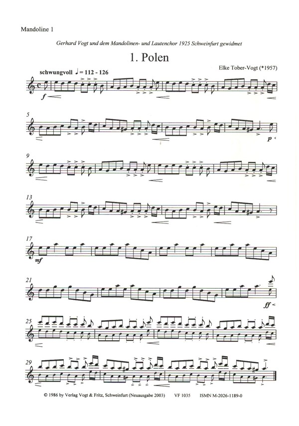 | Untertitel: | für Zupforchester (Blockflöte und Percussionsinstrumente ad lib) Mandoline 1 |