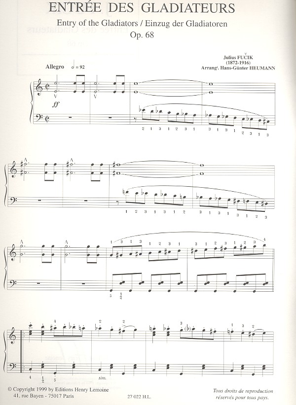 Einzug der Gladiatoren op.68: für Klavier