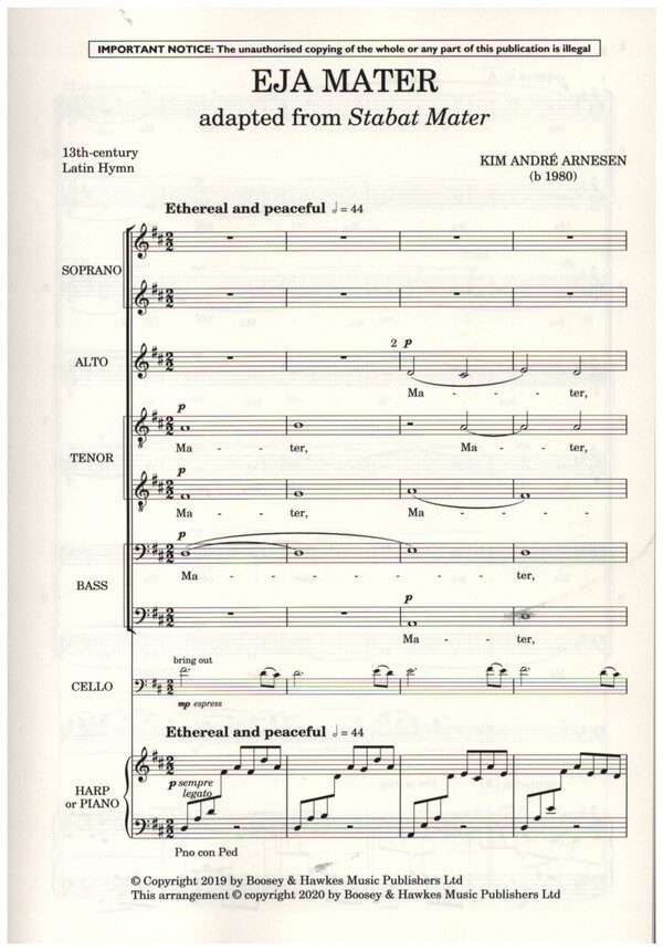 | Untertitel: | for mixed chorus (SSAATTBB), cello and harp or piano score (en) |