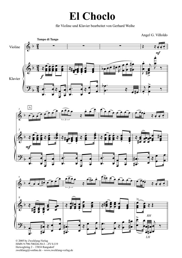 Download-Ausgabe zu ZV0.119 Weihe, Gerhard, Bearb. Argentinischer Tango