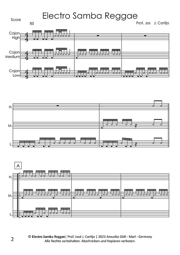 | Untertitel: | für Cajón-Ensemble (3 Spieler) (medium) Partitur und Stimmen |
