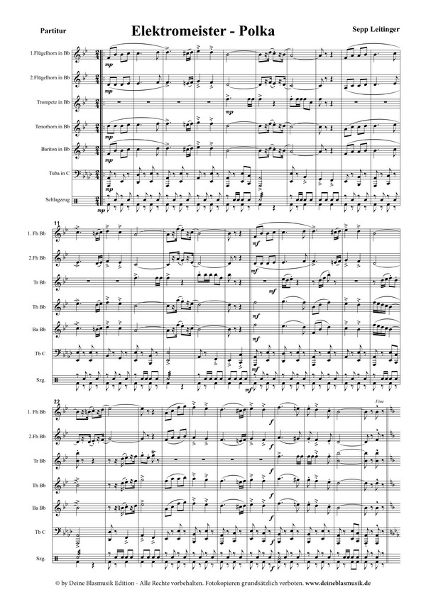 Polka Vielleicht hat Sepp Leitinger unter Strom gestanden, als er dieses Werk schuf. Auf jeden Fall widmet er diese flotte und spritzige Polka im böhmischen Stil allen Elektromeistern. Die schönen Melodien instrumentiert er leicht und gekonnt und schafft es, eine tolle Spannung im ganzen Orchester aufzubauen. Wenn mit dem Abschlussschlag der Stecker gezogen wird, sind Publikum und Musikanten gleichermaßen glücklich.