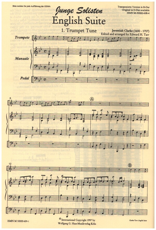 | Untertitel: | transponierte Verision B-Dur Tarr, Edward H., Arr. |