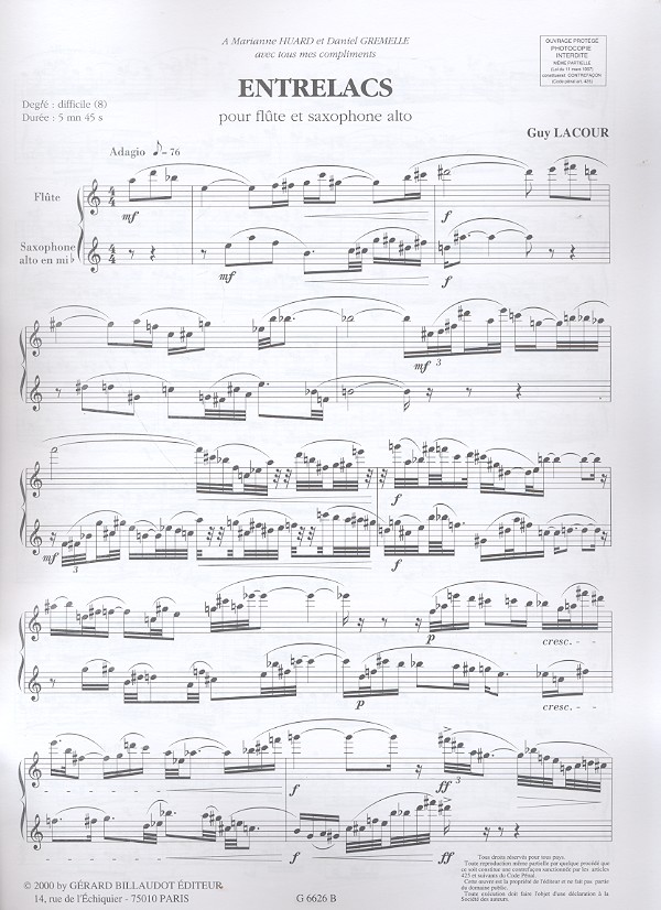 Entrelacs pour flute et saxophone alto