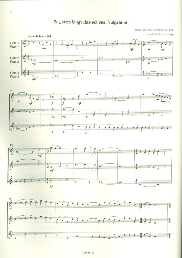 | Untertitel: | für 3 Flöten Partitur und Stimmen |