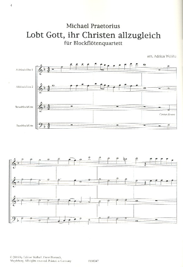 | Untertitel: | für 4 Blockflöten (AATB) 4 Spielpartituren |