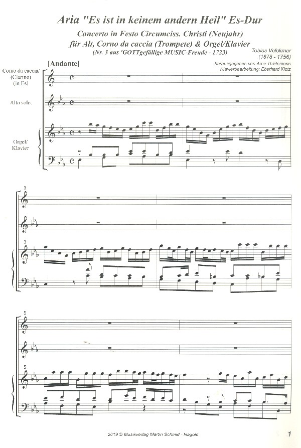 Tobias Volkmar Werke Kantaten con Tromba Band 3a (aus Gottgefällige Music-Freude 1723) Thielemann, Arne, ed Concerto in Festo Circumciss. Christi (Neujahr) Kantate Es-Dur