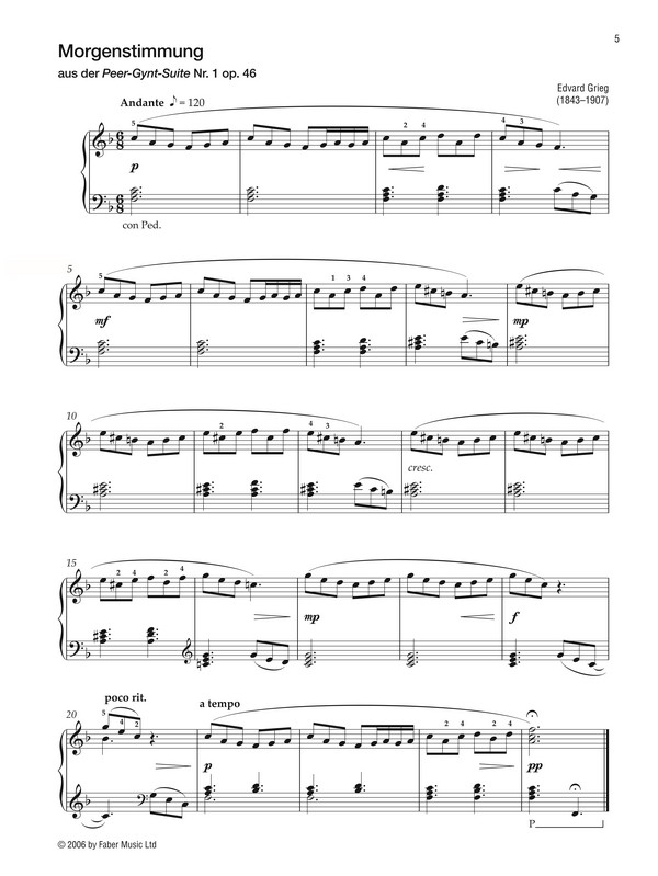 Klavierschule für Anfänger Der Band Es ist nie zu spät ... Klassik zu spielen von Pam Wedgwood enthält 17 berühmte Werke aus dem Bereich der Klassik in leicht gesetzten Klavier-Arrangements von beliebten Opern- und Orchester-Hits wie Verdis Gefangenenchor oder Griegs Morgenstimmung bis hin zu Adaptionen berühmter Klavierwerke wie Debussys Clair de lune. Ideal als Ergänzung zur Klavierschule Es ist nie zu spät ... Klavier zu lernen und eine wunderbare Gelegenheit für Klassik-Begeisterte, bereits ab dem frühen Lernstadium ihr Lieblingsrepertoire am Klavier zu entdecken. Pam Wedgwood (* 1947) ist eine der produktivsten und erfolgreichsten britischen Autorinnen von Unterrichts- und Spielliteratur für junge Instrumentalisten. Seit fast 20 Jahren versorgt sie Lehrende und Lernende mit ebenso grundlegendem wie inspirierenden Repertoire. Ihre bahnbrechende Klavierschule Es ist nie zu spät Klavier zu lernen gibt Erwachsenen die Möglichkeit, mit einer speziell für sie entwickelten Methode Schritt für Schritt die wunderbare Welt des Klavierspielens für sich zu entdecken ganz ohne Vorkenntnisse. Leicht zu spielende Klavier-Arrangements der schönsten Klassik-Hits von Verdis Gefangenenchor oder Griegs Morgenstimmung bis hin zu Debussys Clair de lune. Für Anfänger mit Vorkenntnissen, in leicht ansteigendem Schwierigkeitsgrad Eine wunderbare Ergänzung für all jene, die die Klavierschule Es ist nie zu spät ... Klavier zu lernen erfolgreich absolviert haben. Von der international gefragten britischen Dozentin und Autorin von Unterrichts- und Spielliteratur Pam Wedgwood Inhalt: I vow to thee, my country from The Planets Suite (Holst) Morning from Peer Gynt Suite (Grieg) Prelude in C from Twelve Little Preludes (Bach) Che farò from Orfeo ed Euridice (Gluck) Gymnopédie No.1 (Satie) Symphony No.40: theme (Mozart) Waltz from Swan Lake (Tchaikovsky) Raindrop Prelude (Chopin) Clair de lune (Debussy) Chorus of the Hebrew slaves from Nabucco (Verdi) Pavane (Fauré) Fantaisie Impromptu: theme (Chopin) Rondo alla Turca (Mozart) Polovtsian dance (Borodin) Au fond du temple saint from The Pearl Fishers (Bizet) Flower duet from Lakmé (Delibes) duet: Prelude from Carmen (Bizet)