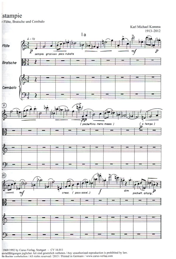 | Untertitel: | für Flöte, Bratsche und Cembalo Partitur und Stimmen |