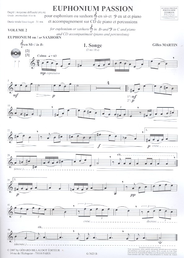 | Untertitel: | pour euphonium (saxhorn) en sib ou ut et piano |