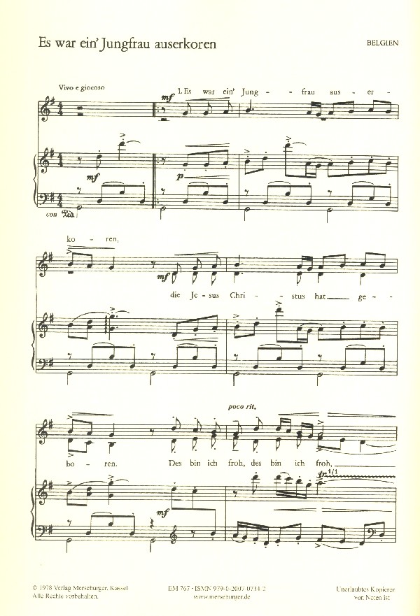 An dem heiligen Stephansfest Auf der Alm in dunkler Nacht Bring ein Licht, Jeanette, Isabelle Das neugeborne Kindelein Der Heiland ist geboren Durch das Dorf ziehn junge Burschen Eine neue Freude Gottes Boten künden Es ist ein Ros entsprungen Es lagen die Hirten bei Nachte Es war ein' Jungfrau auserkoren Herab aus Sternenhöhen Herbei, o ihr Gläubigen In nächt'ger Stille Jesu Stiefelchen sind schlecht Jetzt ist es Weihnacht wieder Nun singet und seid froh Schlafe, schlafe, holdes Kind Schmückt den Saal mit Mistelzweigen Unser Lob soll weit erschallen Vom Himmel kam der Engel Schar Wer klopfet an Wie die Knospe bei der Rose Wir preisen das Erscheinen Zu Bethlehem der Engel sprach