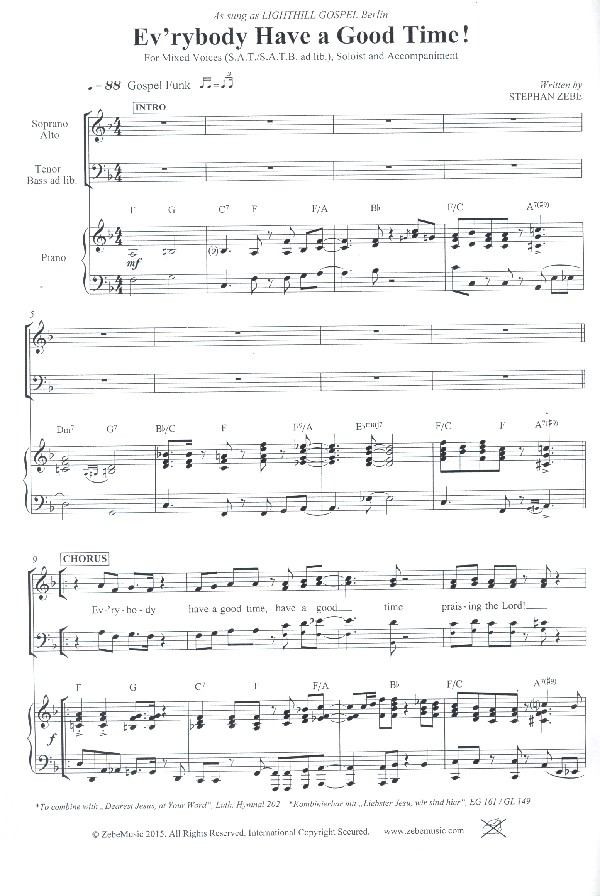| Untertitel: | für Soli, gem Chor (Gospelchor) und Klavier (Publikum ad lib) Partitur |
