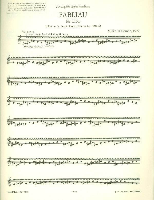 | Untertitel: | für Flöte solo (Flöte in G, große Flöte, Flöte in Es, Piccolo) |