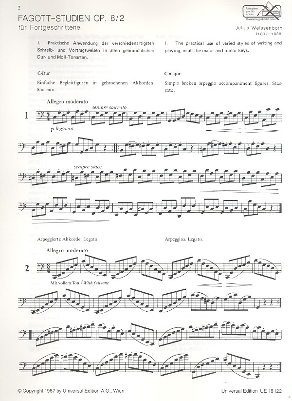 Fagott-Studien für Fortgeschrittene op.8,2 (Urfassung)