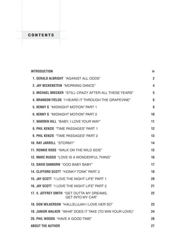 from R&B, Pop, and Smooth Jazz Songlist: 1. Midnight Motion 2. Against All Odds (Take a Look At Me Now) 3. Walk On The Wild Side 4. Ooo Baby Baby 5. What Does It Take (To Win Your Love) 6. Stormy 7. Baby, I Love Your Way 8. Have A Good Time 9. Morning Dance 10. Get Outta My Dreams, Get Into My Car 11. Hallelujah, I Love Her So 12. I Heard It Through the Grapevine 13. I Love The Night Life 14. Love Is A Wonderful Thing 15. Still crazy after all these years 16. Time Passages 17. Honky Tonk (Parts 1&2)