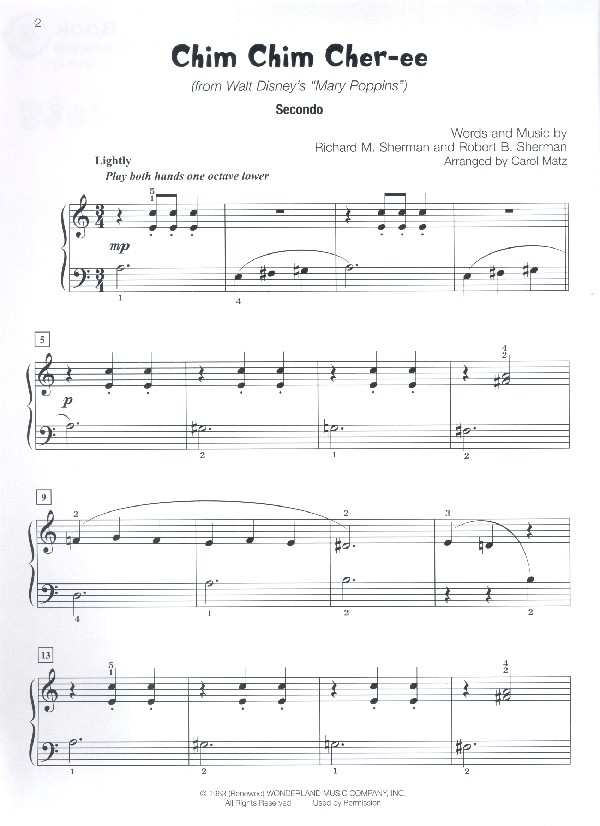 Matz, Carol, arr. early intermediate Chim Chim Cher-ee Consider yourself Hakuna matata Itsy bitsy teenie weenie yellow Polka Dot Bikini Music Music Music The pink Panther Theme from New York New York We're off to see the Wizard