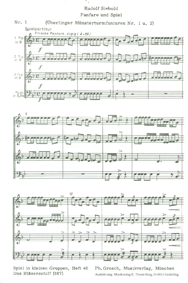 Spiel in kleinen Gruppen 46 Regner, Hermann, ed Überlinger Münsterturmfanfaren 1-2 Werkreihe für Bläser Das Bläserschiff