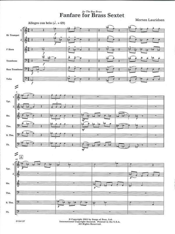 | Untertitel: | für 2 Trompeten, Horn, Posaune, Bassposaune, Tuba Partitur und Stimmen |
