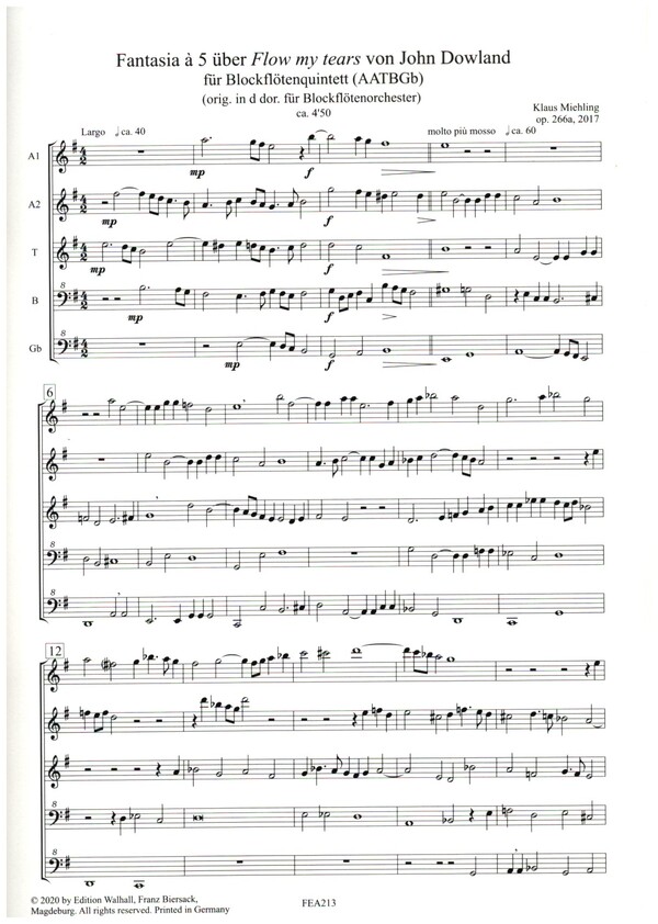 Fantasia à 5 über "Flow my tears" von John Dowland op.266a