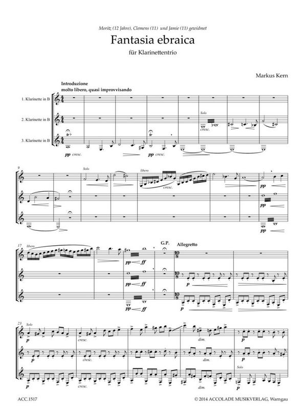 | Untertitel: | für 3 Klarinetten Partitur und Stimmen |