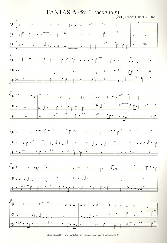 | Untertitel: | for 3 bass viols, recorders, bass or treble instruments score and parts |