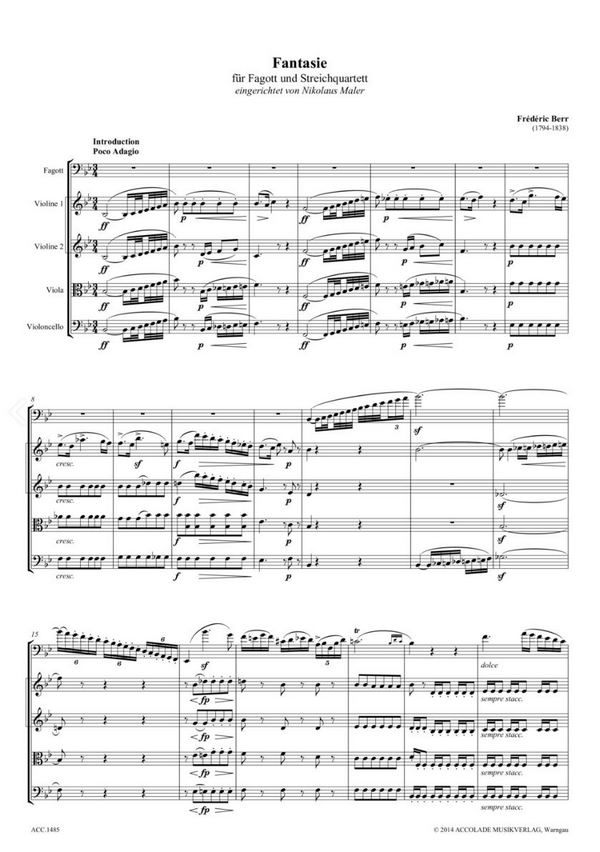 Produktinformationen "Fantasie B-Dur für Fagott und Streichquartett"