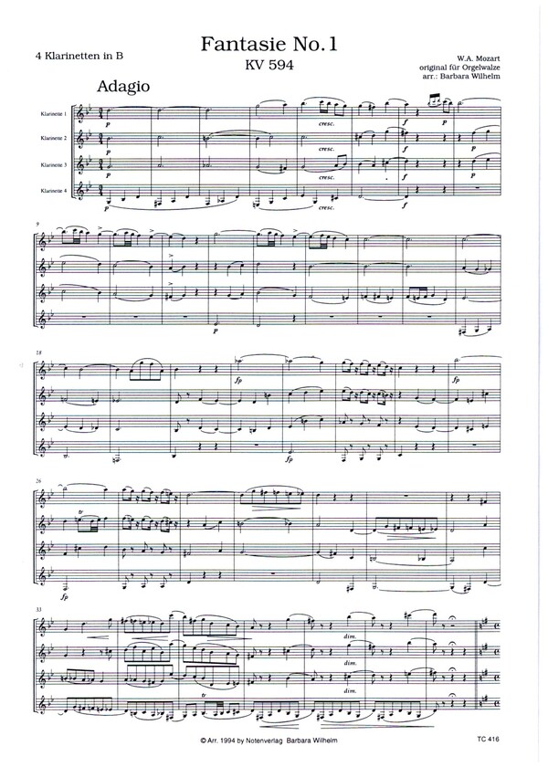 | Untertitel: | für 4 Klarinettten Partitur und Stimmen |
