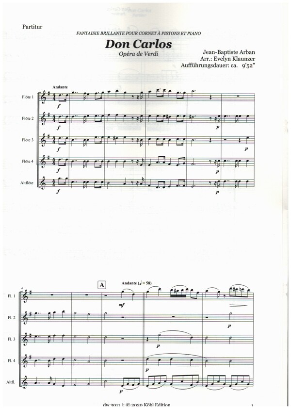 | Untertitel: | für Flötenquintett (4 Flöten und Altflöte) Partitur und Stimmen |