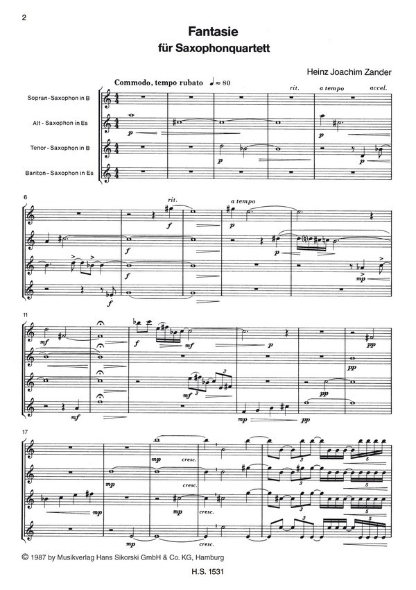 Fantasie für Saxophonquartett
