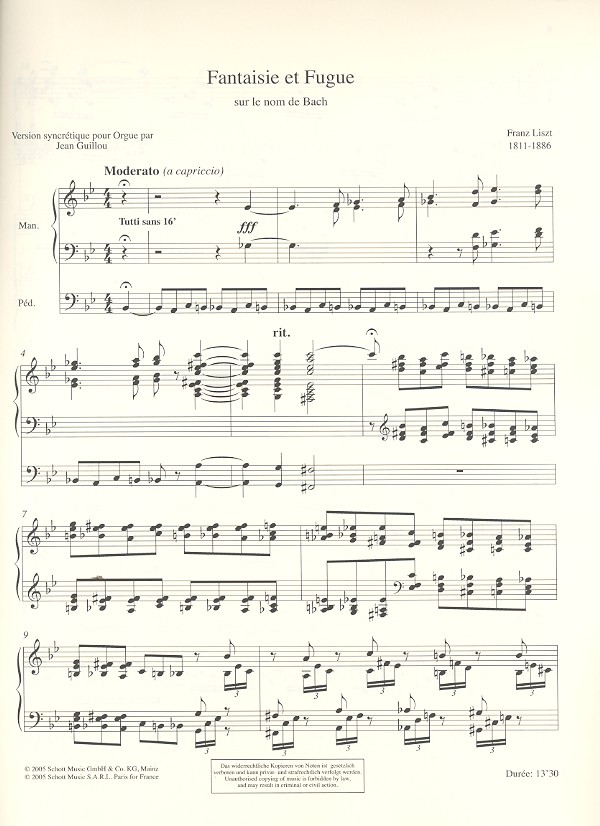 nach der Orgel- und Klavierfassung Franz Liszts zusammengestellte synchretistische Fassung