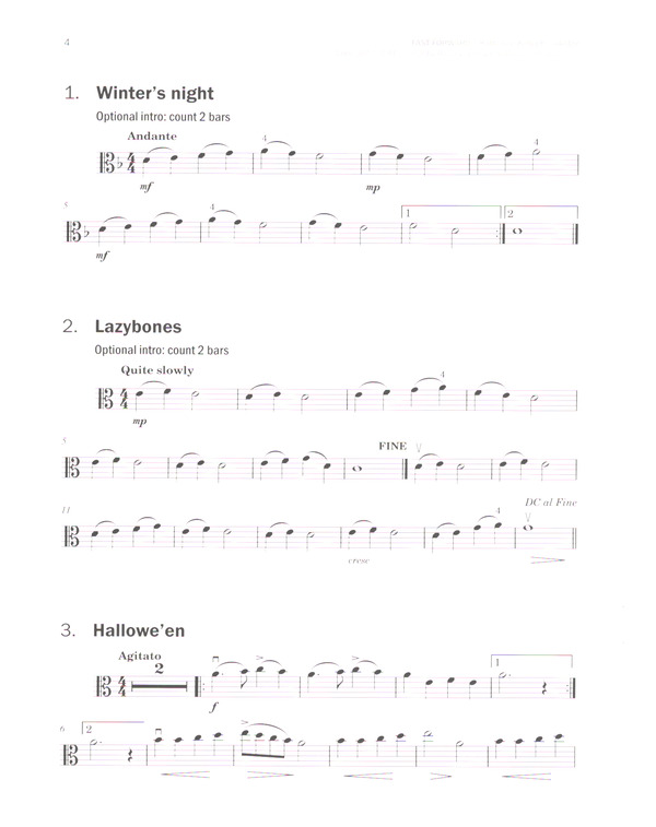 21 pieces for viola players At harvest time Boogie-woogie Clever clogs! Drifting Fast forward Hallowe'en Hornpipe Hustle, bustle Lazybones Mellow cello Once upon a time Polly's polka Singapore sunset Something or other! Sweet dreams The ceilidh Weeping willow What's the time Windmills Winter's night
