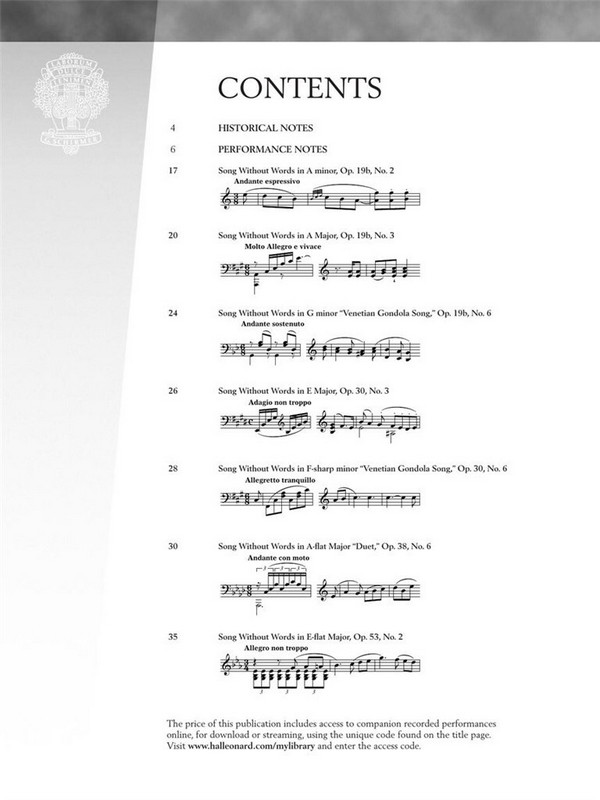 Felix Mendelssohn Bartholdy, Selections From Songs Without Words