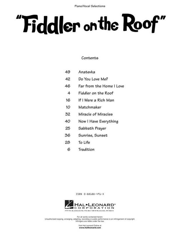 Anatevka Do You Love Me Far From The Home I Love Fiddler On The Roof If I Were A Rich Man Matchmaker Miracle Of Miracles Now I Have Everything Sabbath Prayer Sunrise, Sunset To Life Tradition