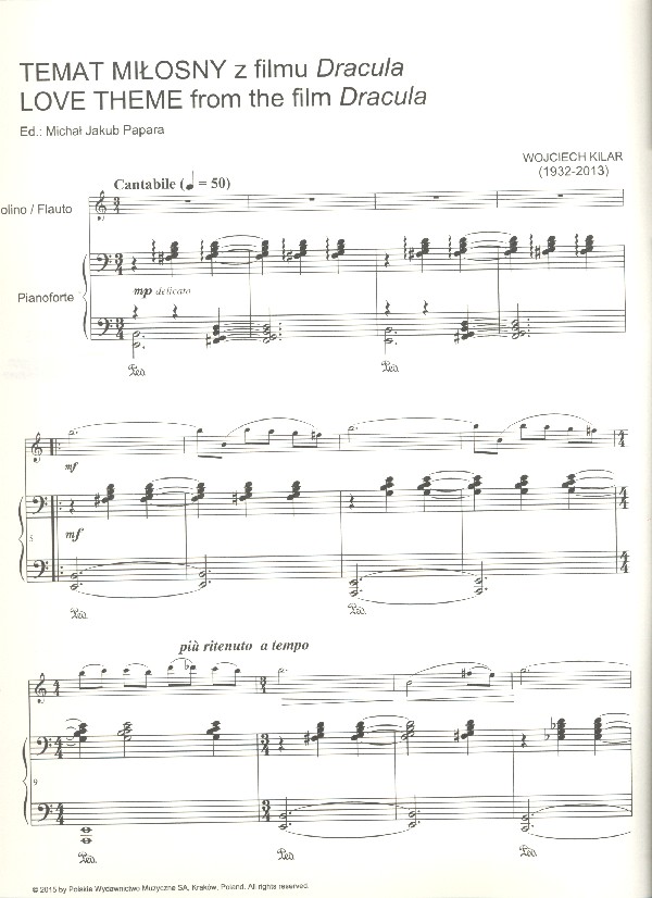 Papara, Michal Jakub, ed Love Theme from Dracula Vocalise from The ninth Gate (Dziewiate Wrota) Theme from The Pianist (Pianista) Prologue from The Portrait of a LadyPortret damy) Phantasms of Love from The Portrait of a Lady Music of the Cruise from The Shadow Line (Smuga cienia) Waltz from The Land of Promise (Ziemia obiecana)
