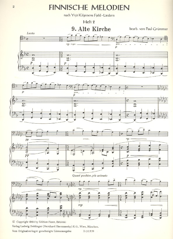 nach den Fjeld-Liedern von Yrjö Kilpinen
