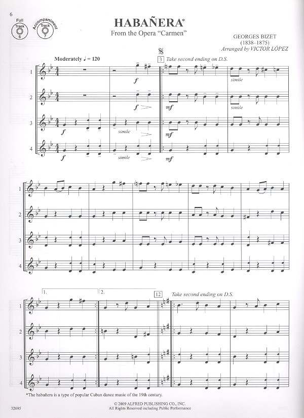 Lopez, Victor, arr. The Barber of Seville (Overture, Rossini) Bourrée from Lute Suite no.1 (Bach) Habanera from Carmen (Bizet) Hungarian Dance no.5 (Brahms) Minuet from Anna Magdalena Bach Notebook (Bach) New World Symphony (Dvorak) Pomp and Circumstance (Elgar) Prince of Denmark's March (Clarke) Toreador's Song from Carmen (Bizet) William Tell (Overture, Rossini)